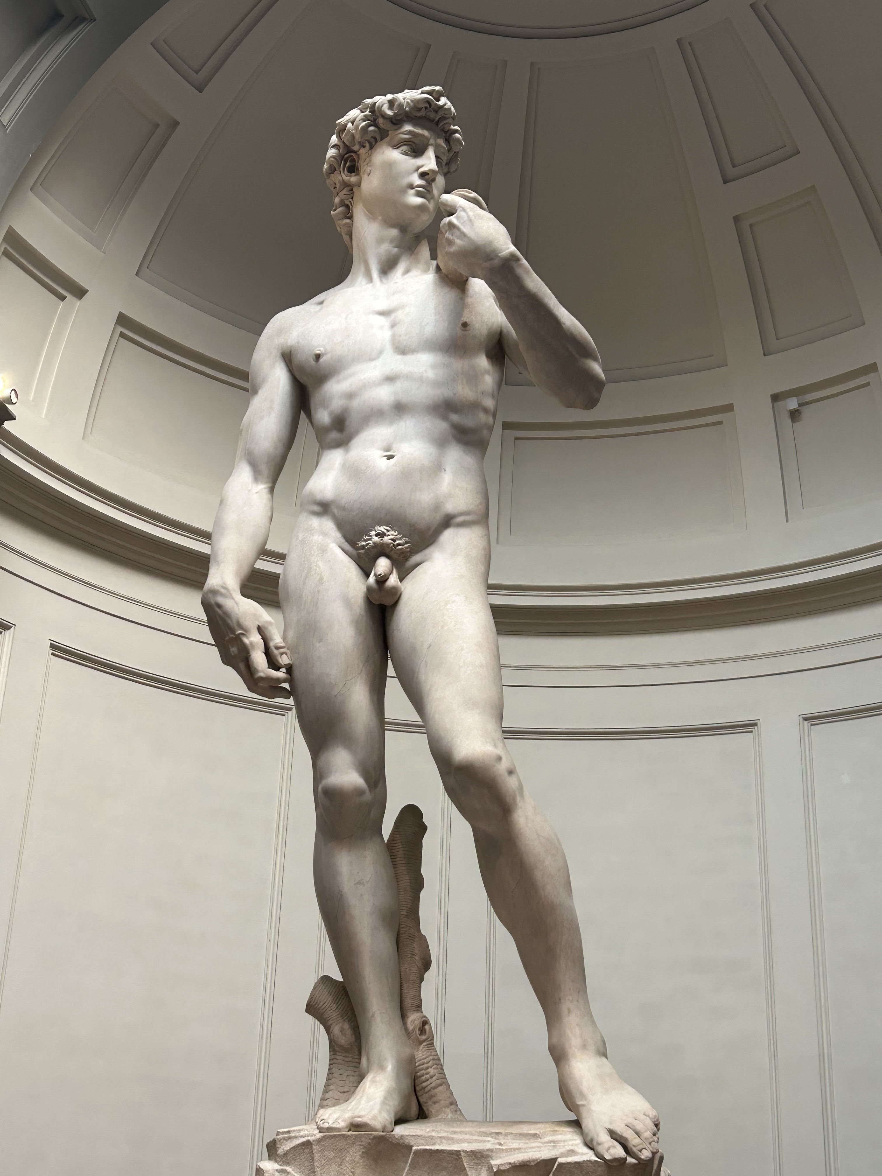 Me dí la vuelta y caminé hacia la salida del museo. La reacción de David no me sorprendió en lo absoluto, sabía de su vanidad supina, había sido creado con ese fin y no podía desprenderse de ese pecado capital. La lucha contra Goliat era una excusa para que muestre su imperiosa musculatura y él era consciente de eso. Le pesaba en el alma. Solo se sentía adorado por su estética y no por sus hazañas. Por eso la necesidad de irse al Ponte Vecchio a evadirse de las miradas obscenas y milimetricas ,salirse de sí mismo, y contemplar a la humanidad desde otra óptica, ahora él los mirarará a ellos.